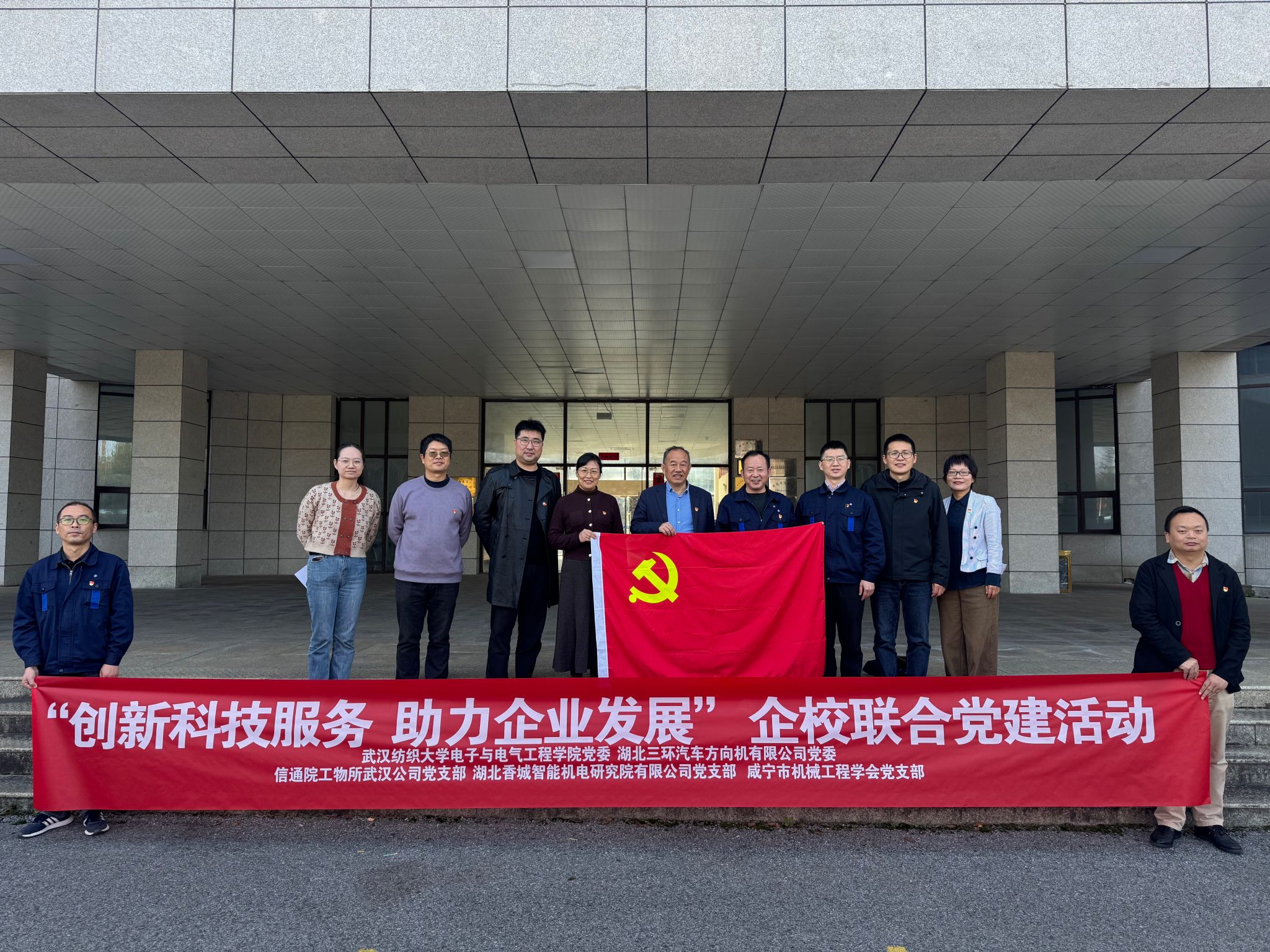 党委与咸宁市机械工程学会党支部、湖北三环汽车方向机有限公司党委、信通院工物所武汉公司党支部、湖北香城智能机电研究院有限公司党支部组织开展校企联合党建活动。各企业负责人,学院党委书记张红鑫,教师党员代表共同参会。