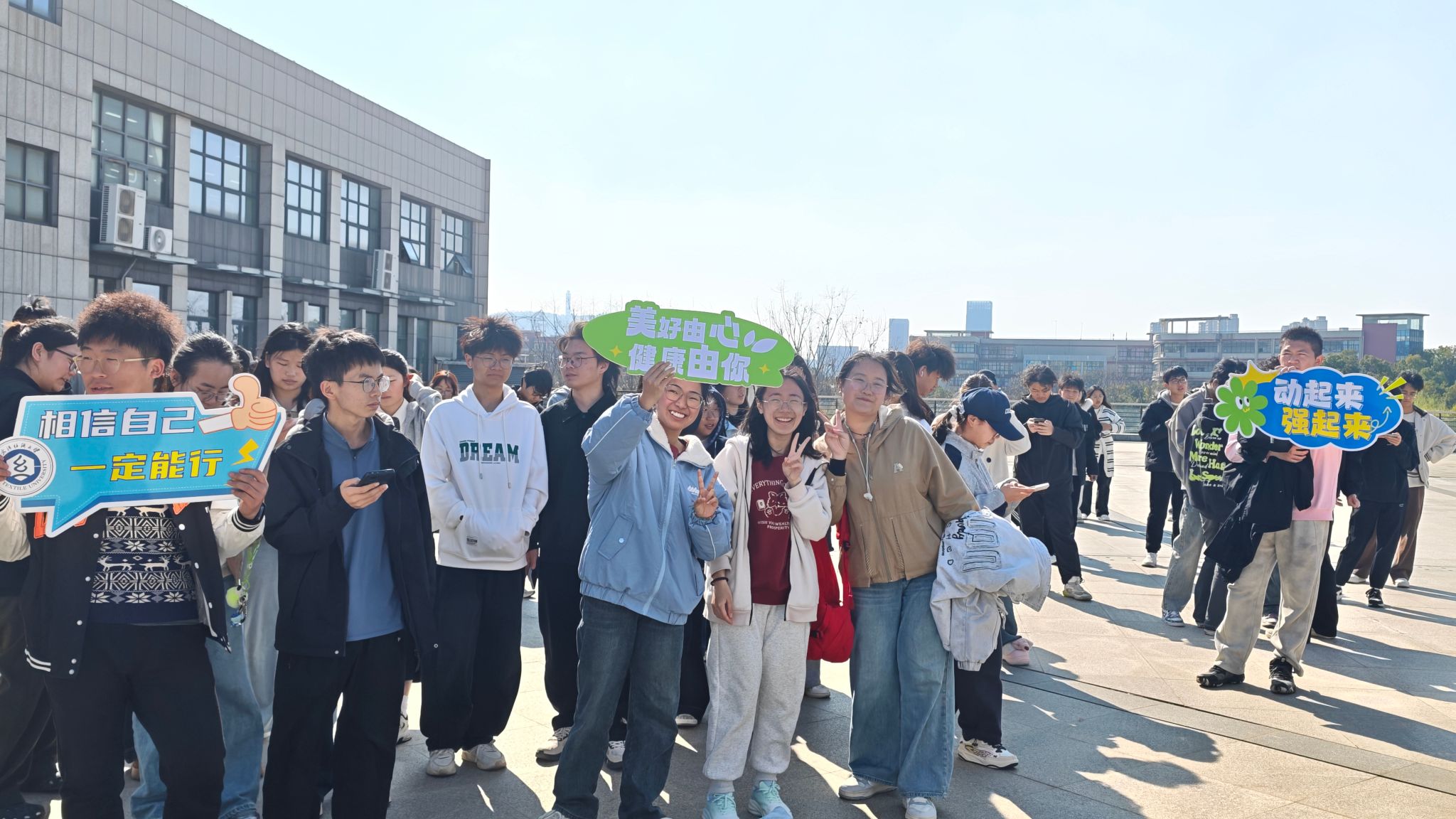 本次健康文化节的首个比赛项目为拔河,吸引了来自各科研团队、各专业的四百余名师生参加。每支参赛队伍由5名教师、12名学生组成。参赛师生齐心协力,在运动中增进交流,收获合作的喜悦。未参赛的师生在场边加油助威,现场欢笑声、加油声此起彼伏,不少学生举着“五育并举 全面发展”“美好由心 健康由你”等手举牌合影留念。