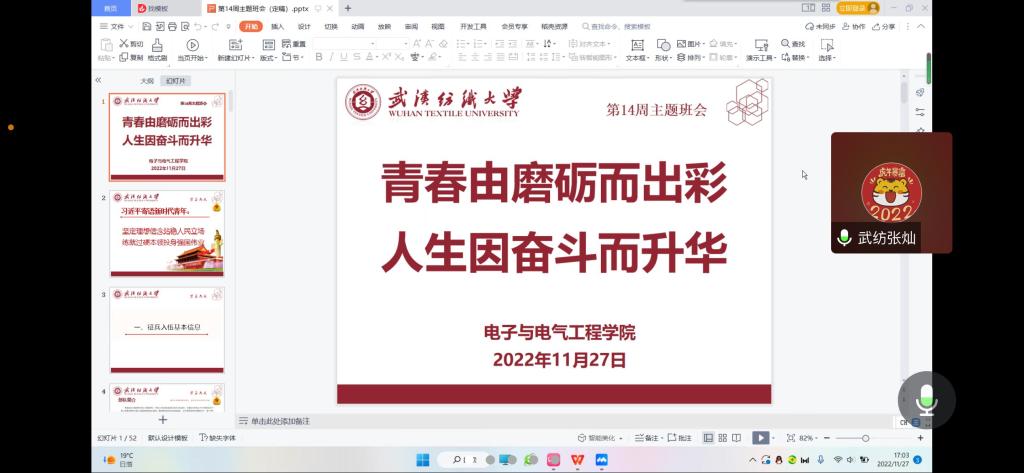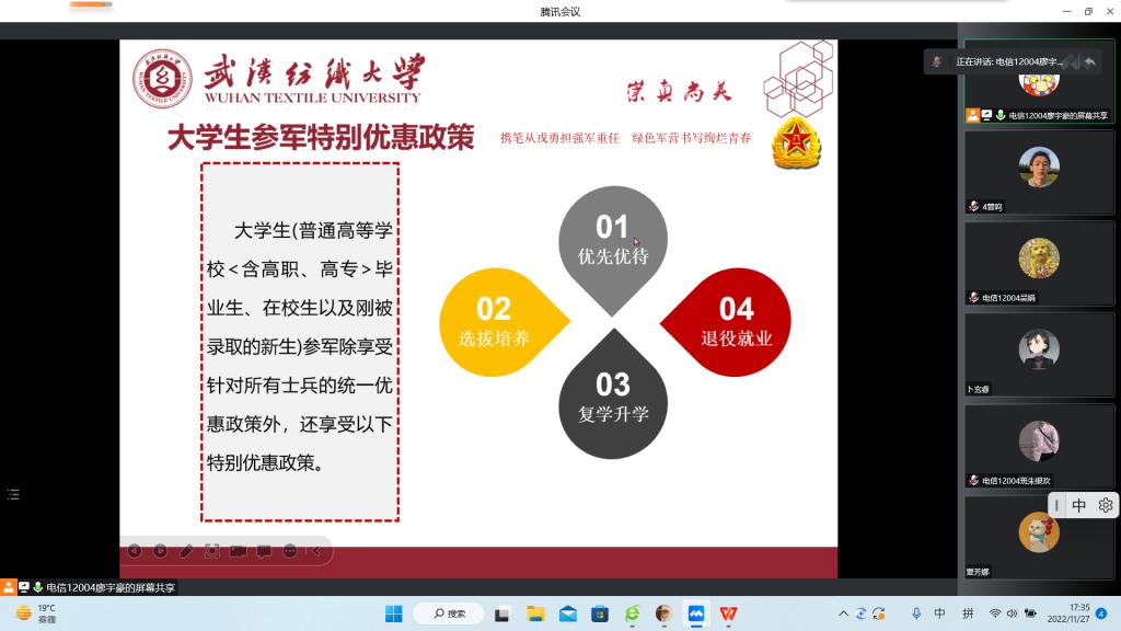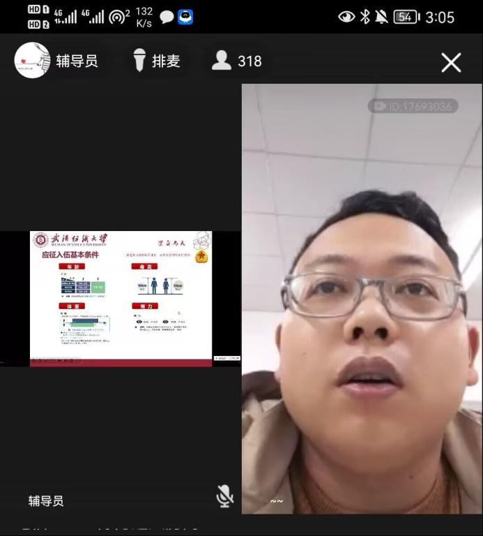 各年级11月27日利用晚点名,线上召开年级大会和班会开展大学生征兵宣传活动。此次班会由各年级辅导员和班主任组织,利用视频和PPT资料向同学们讲述征兵入伍的意义及我校走兵的优惠政策,充分调动同学们报名应征的积极性。
