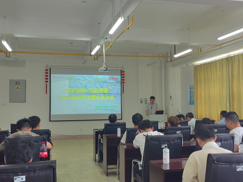 承办的“研究生导学思政坛之2023届毕业生就业座谈会”在崇真南楼A6013举行。本次活动以“筑梦起航·行远思源”为主题,学院党委副书记肖乃涛,副院长张南刚,研究生导师代表沈满德教授、张法全教授出席了活动。座谈会由研究生辅导员夏奎主持,近50名研究生代表参加了会议。