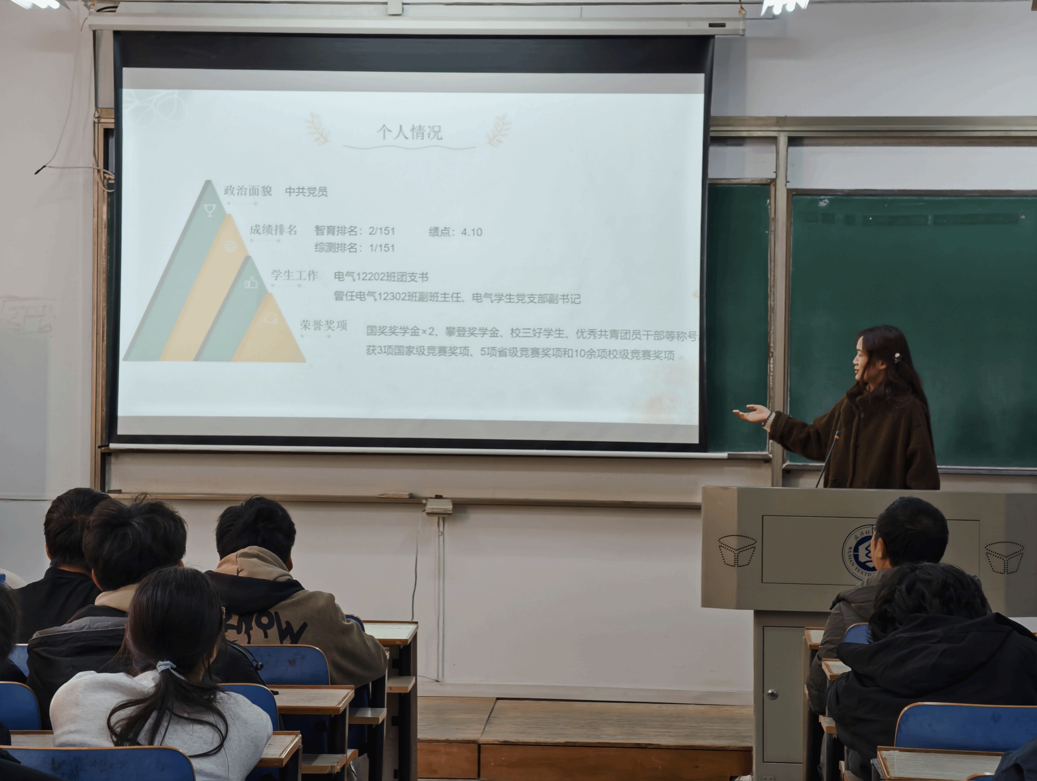 论坛中,三位优秀学长学姐倾囊相授实用上岸经验。电气12202班王雨、12203班汪平生结合自身优异绩点与丰富竞赛经历,聚焦保研核心要点,从课程学习方法、综合评分规则、竞赛加分技巧等方面细致拆解,分享了学业目标规划、深耕专业课程、选择性参与学科竞赛的备考策略。电气12204班齐贵强则围绕考研全流程,详解“冲稳保”择校策略、四轮复习计划、各科高效备考方法及心态调节技巧,为有考研意向的学子提供了可落地的行动指南。