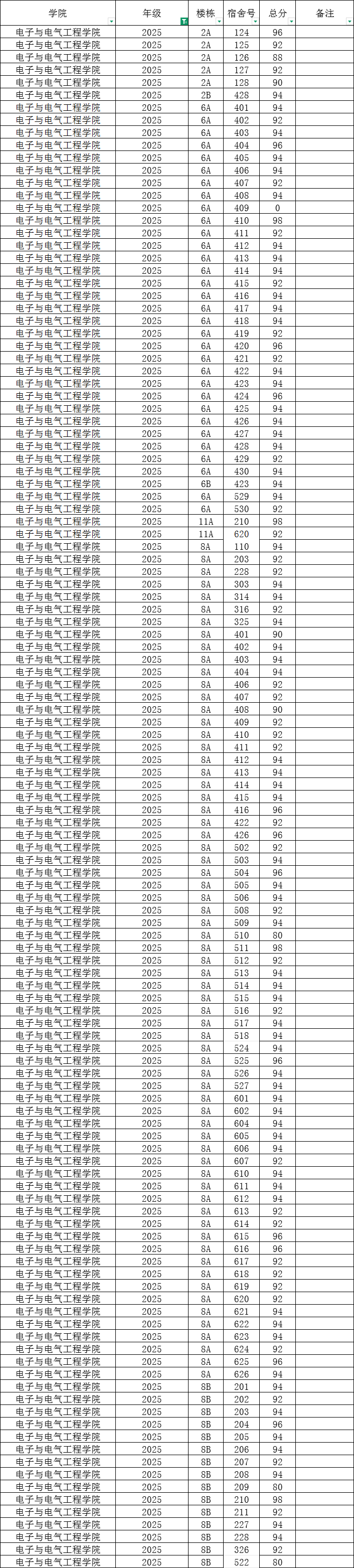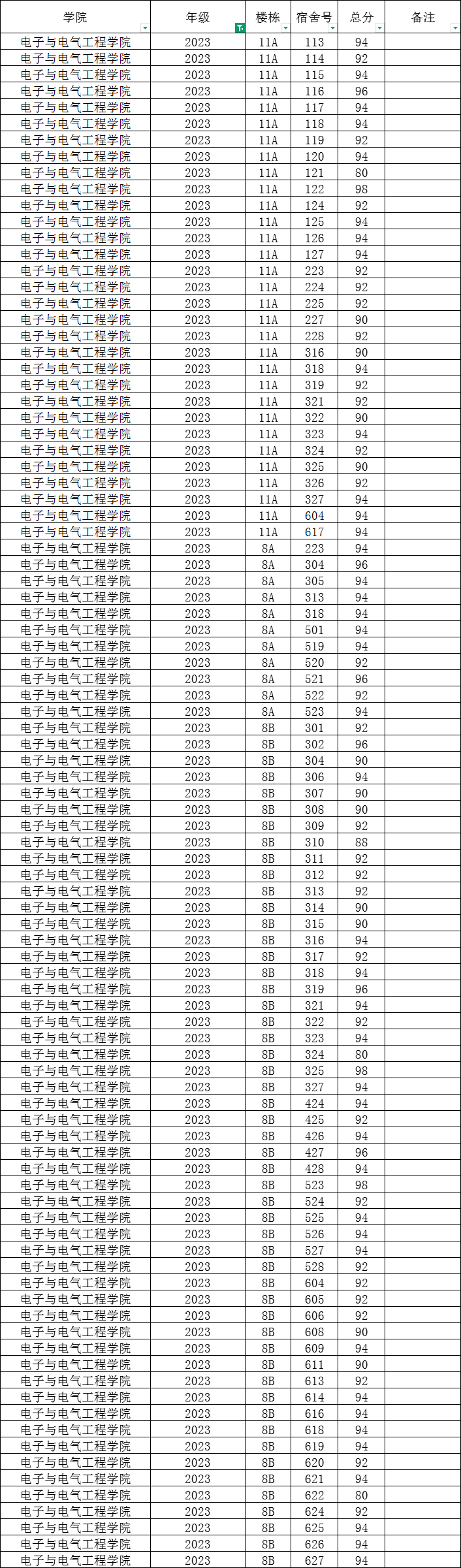 根据统一安排,现将学院本学期第16周寝室公检情况公布如下