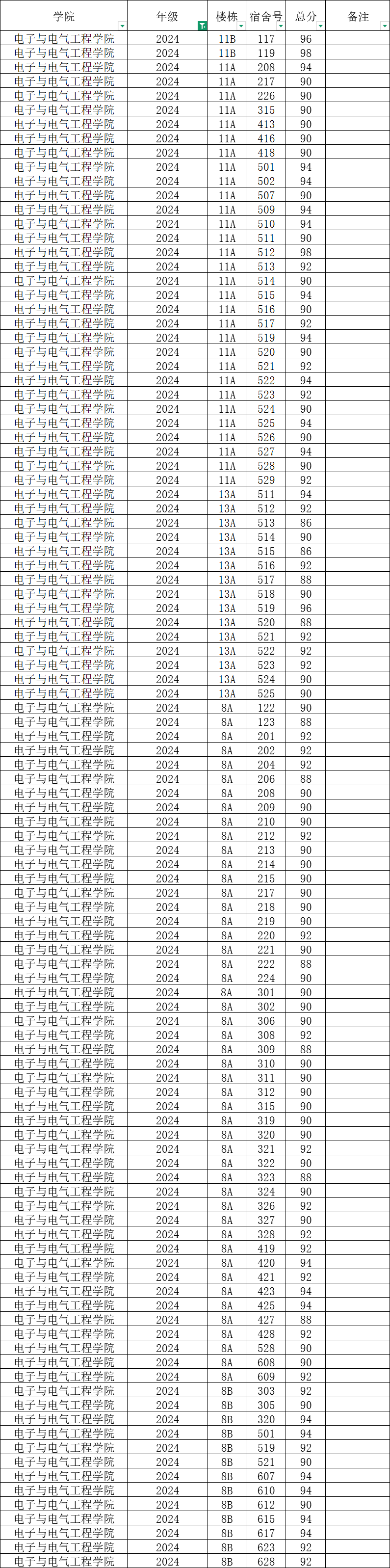 根据统一安排,现将学院本学期第18周寝室公检情况公布如下: