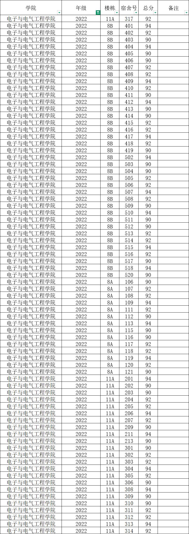 各班级,各寝室: