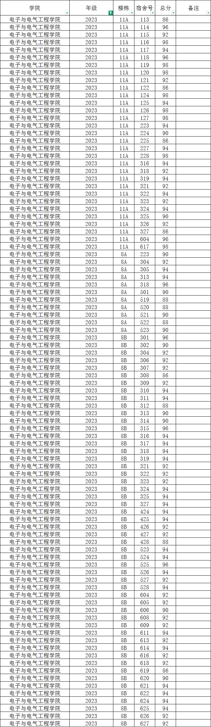 根据统一安排,现将学院本学期第1周寝室公检情况公布如下