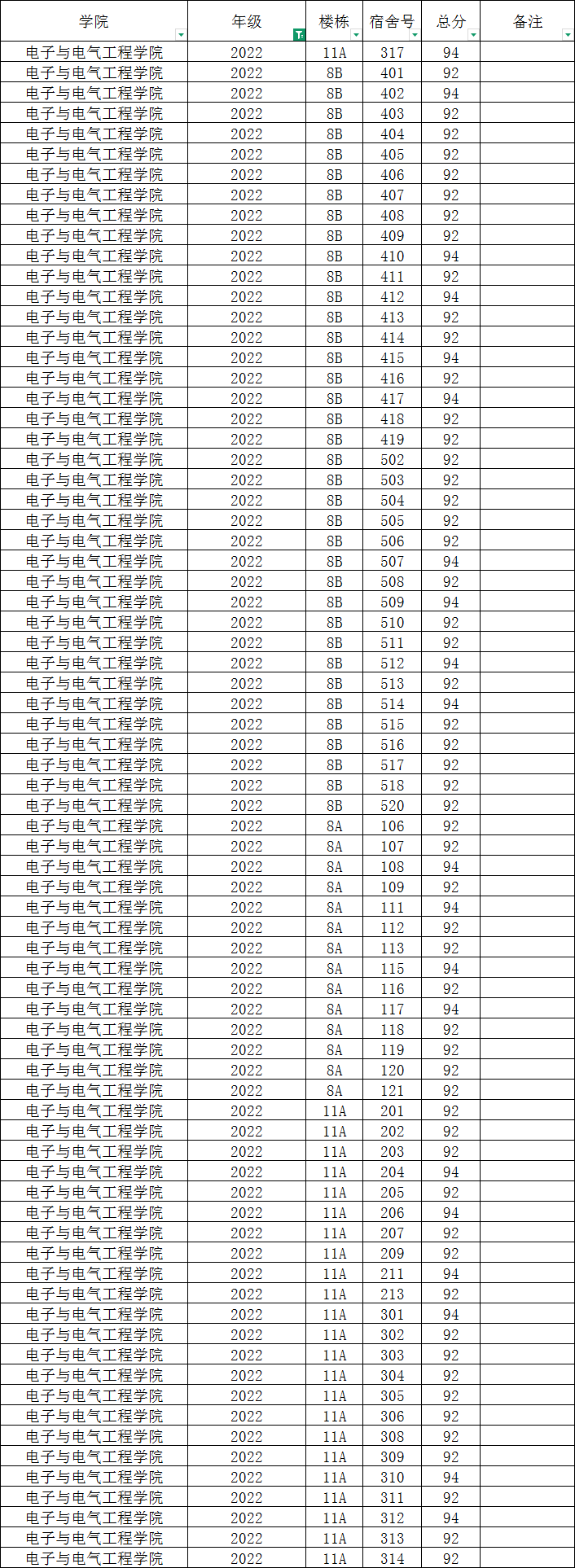各班级,各寝室: