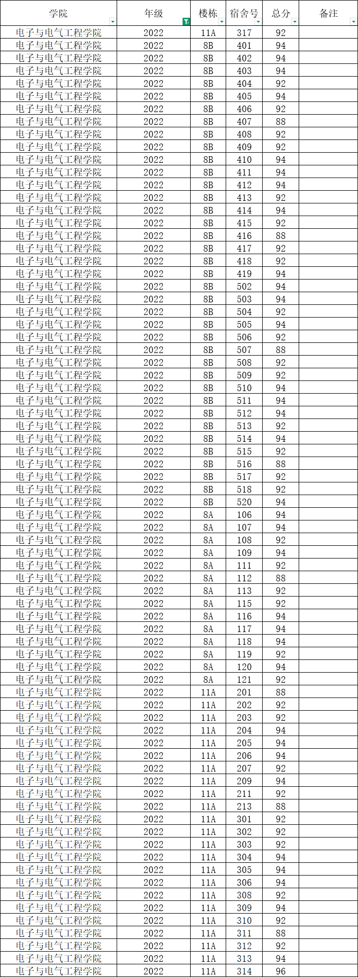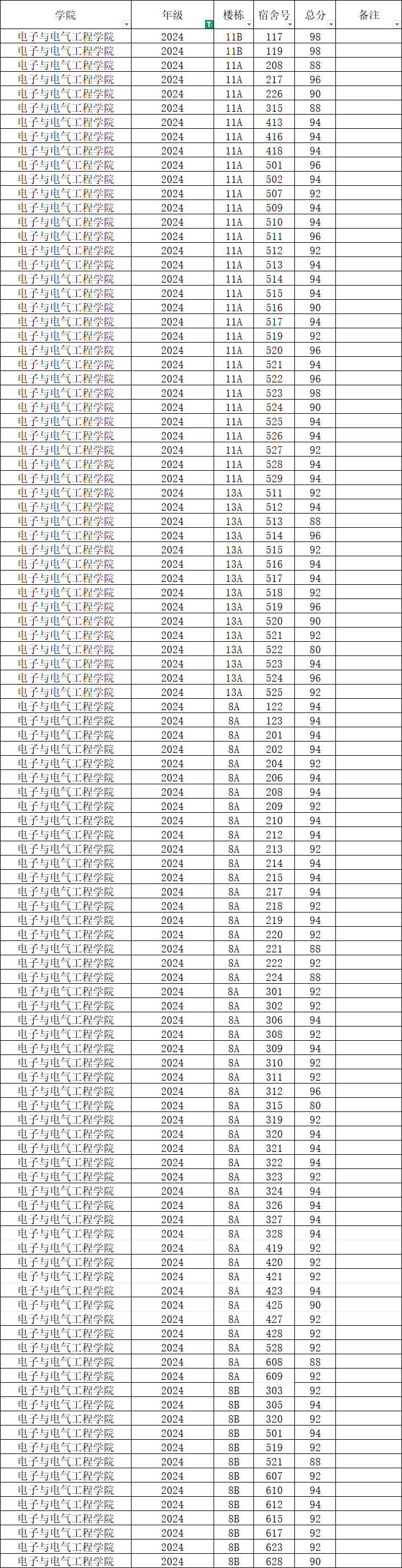 根据统一安排,现将学院本学期第4周寝室公检情况公布如下