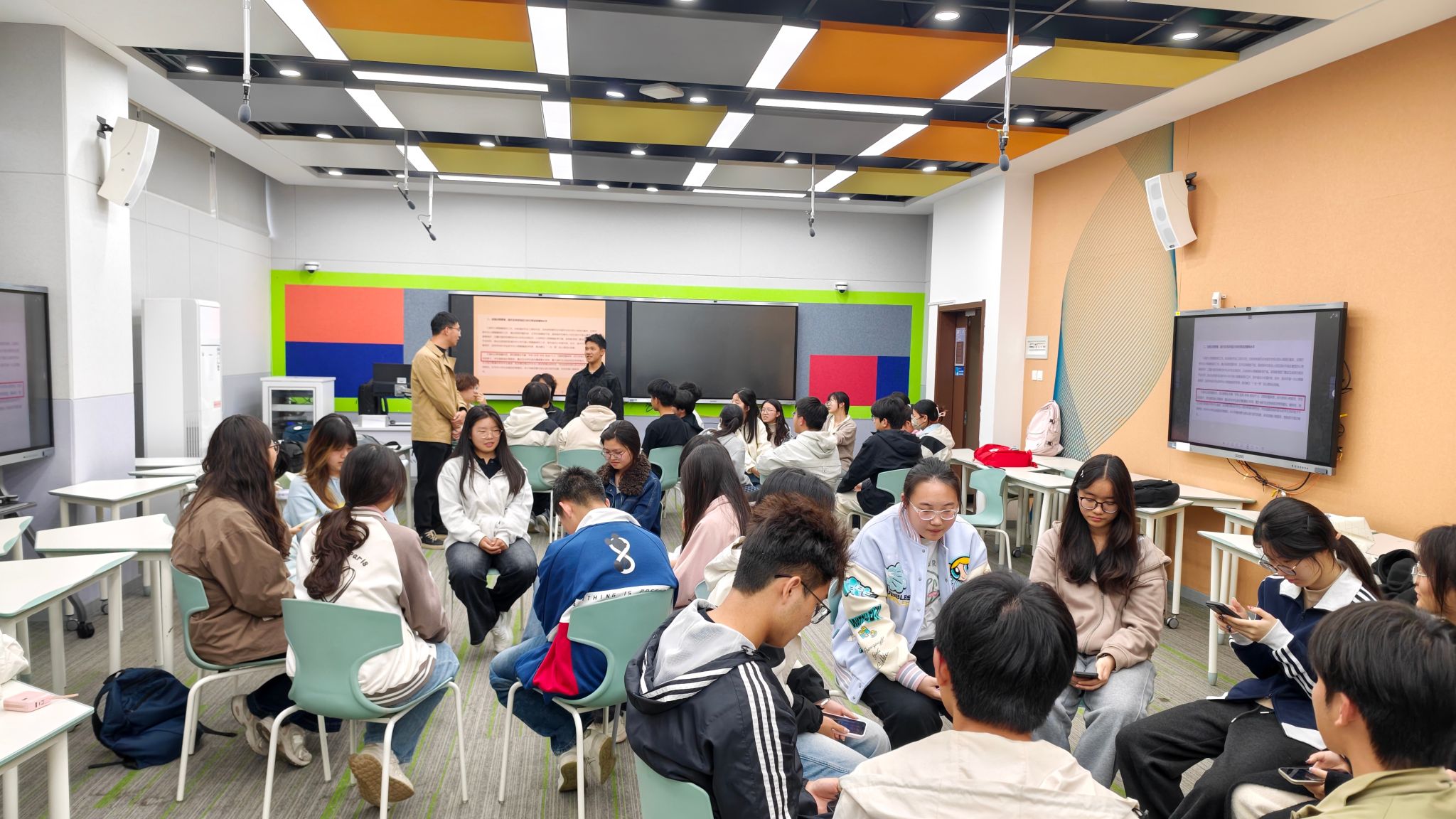 培训开始,黄东涛首先通过两项轻松的热身小游戏帮助在场同学快速放松身心,增进彼此熟悉度。随后,他将现场人员分为四个小组,引导大家围绕“抑郁症的常见症状有哪些”“为什么遇到异常情况要及时上报”“发现自身或他人出现明显心理异常时应如何规范报告”等话题展开充分讨论。各组依次选派代表分享讨论成果,黄东涛针对每组观点逐一进行细致点评与补充讲解。