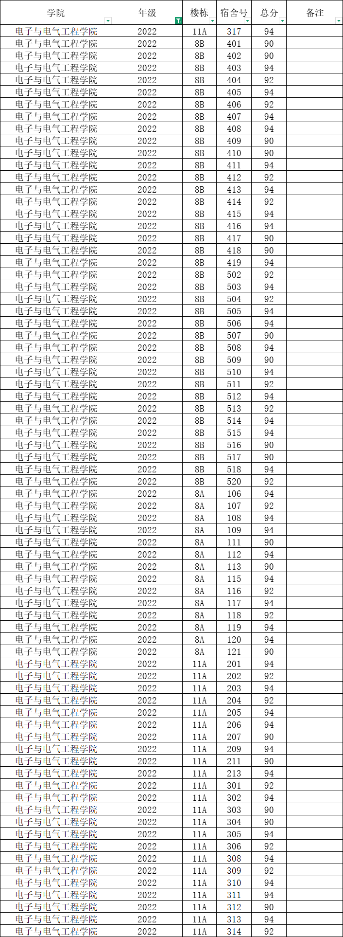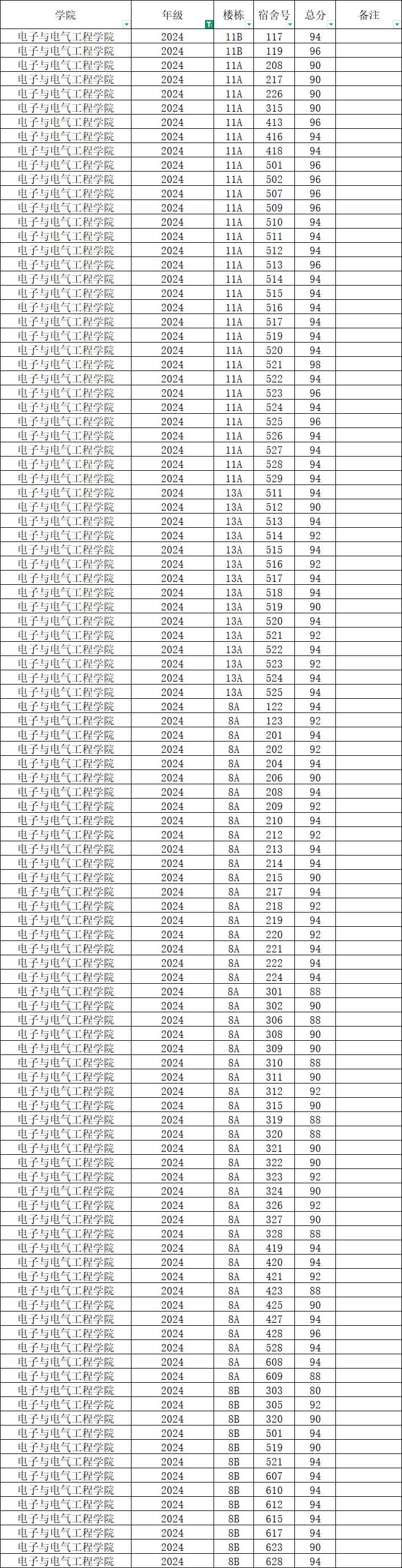 根据统一安排,现将学院本学期第8周寝室公检情况公布如下